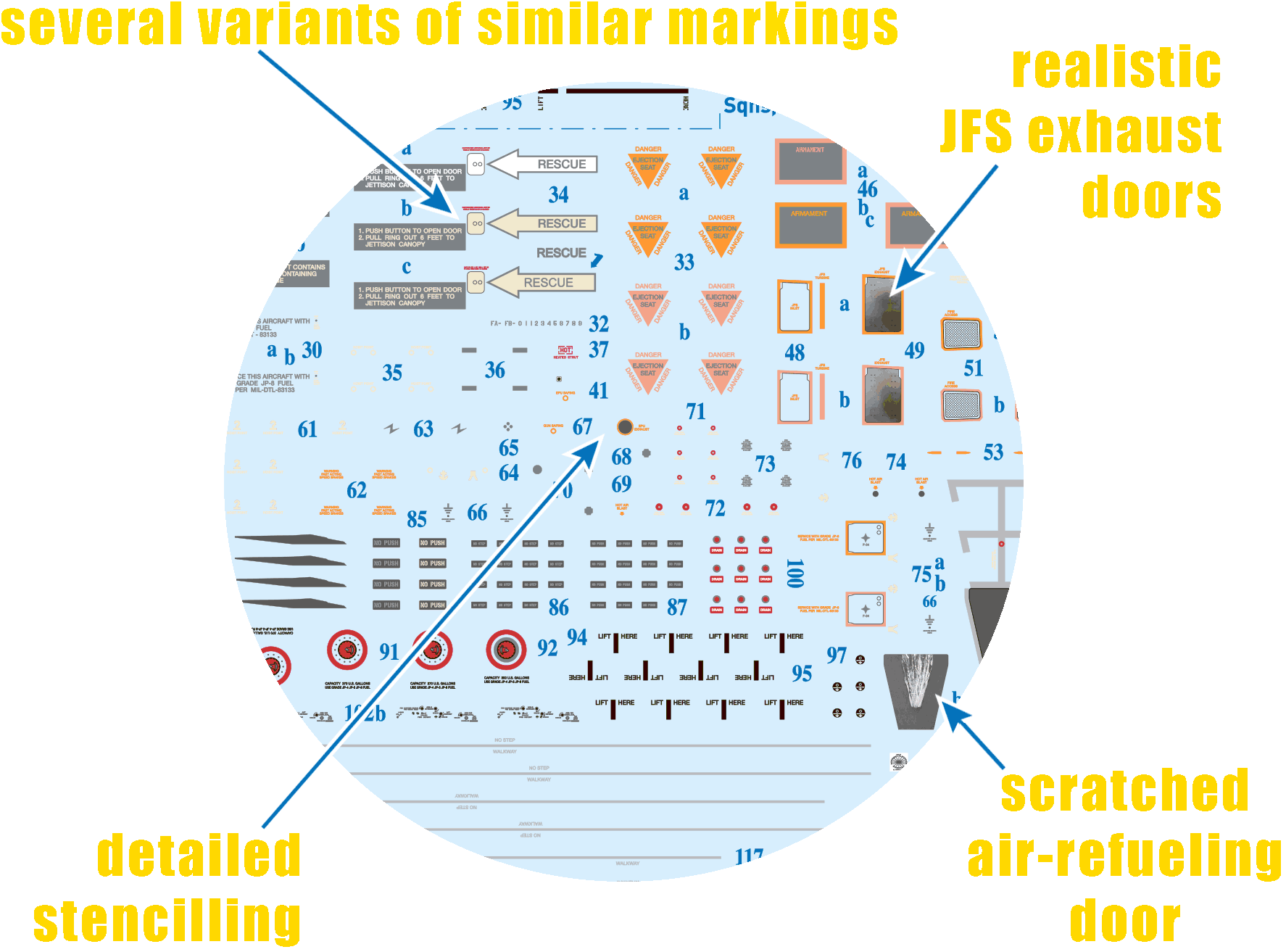 New in this sheet are realistically printed Jfs and air-to-air refueling doors.