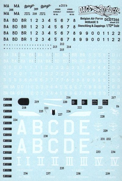 Daco Products - 1/72 Scale Belgian Air Force Mirage 5 Stencilling & zappings