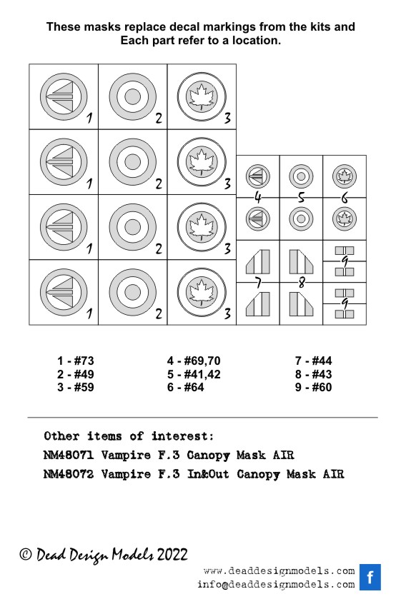 Dead Design Models - 1/48 De Havilland Vampire F.3 markings and National Insignias(for Airfix kits)