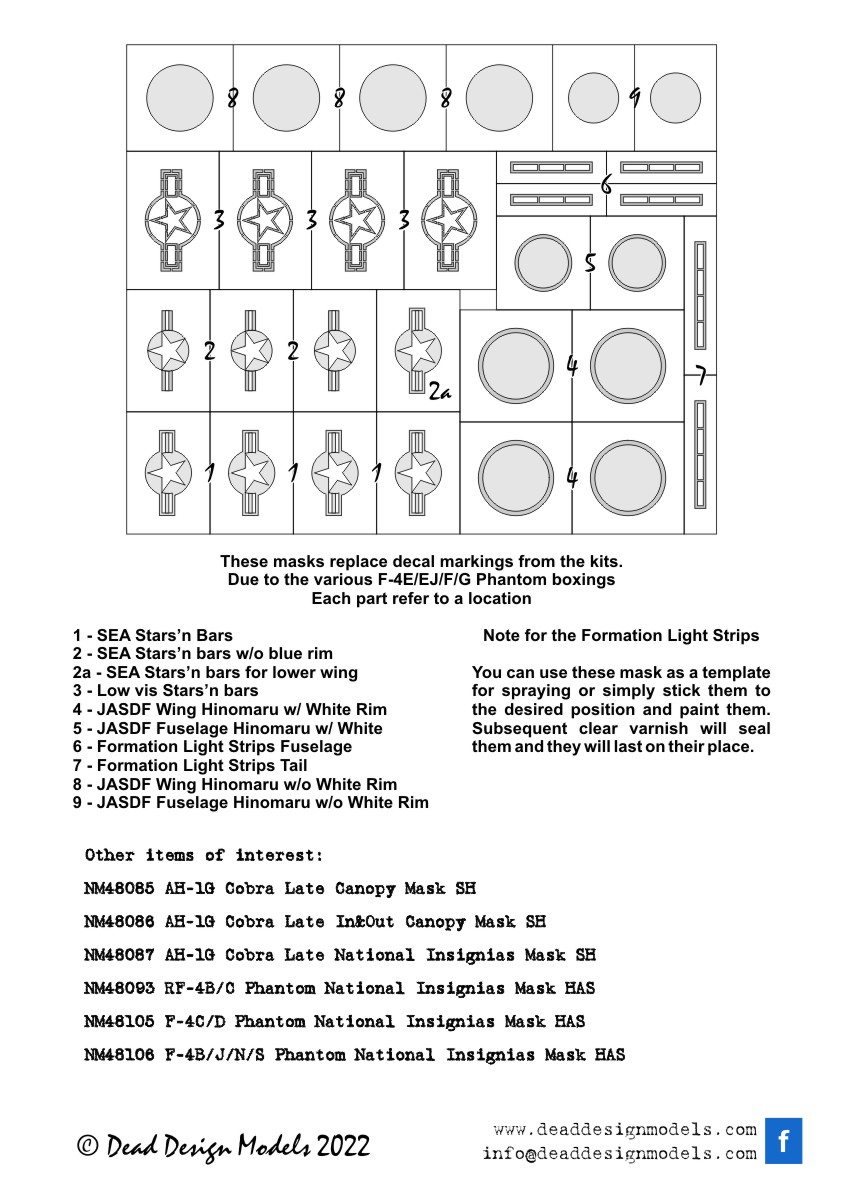 Dead Design Models - 1/48 McDonnell F-4E/EJ Phantom II National Insignia masks (for Hasegawa kits)