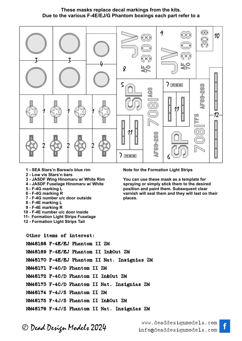 Dead Design Models - 1/48 McDonnell F-4E/EJ Phantom II National Insignia for Zoukei-Mura masks