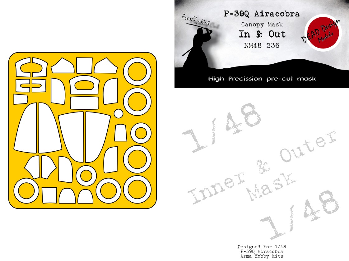 Dead Design Models - 1/48 Bell P-39Q Airacobra canopy frame paint mask inside and outside for Arma Hobby