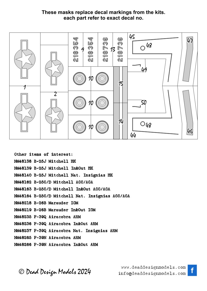 Dead Design Models - 1/48 Bell P-39N Airacobra National Insignias for Arma Hobby