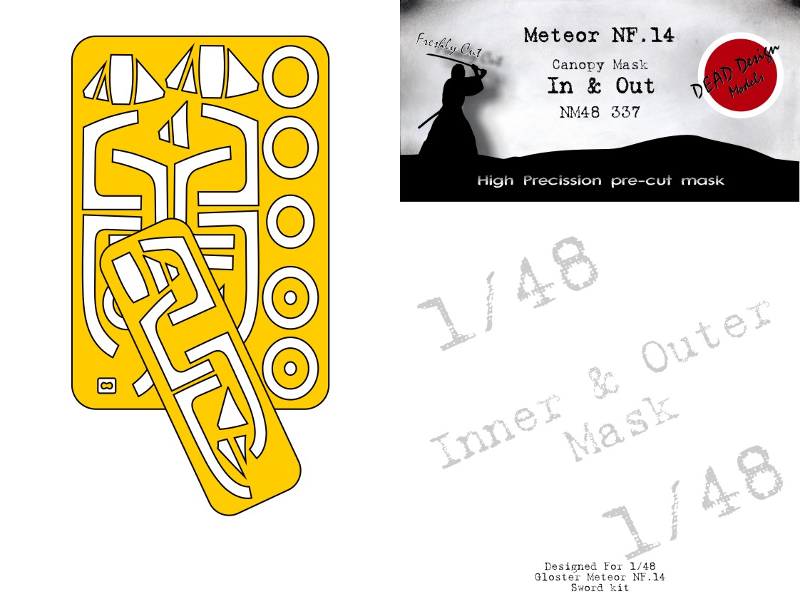 Dead Design Models - 1/48 Gloster Meteor NF.14 canopy frame paint mask inside and outside for Sword