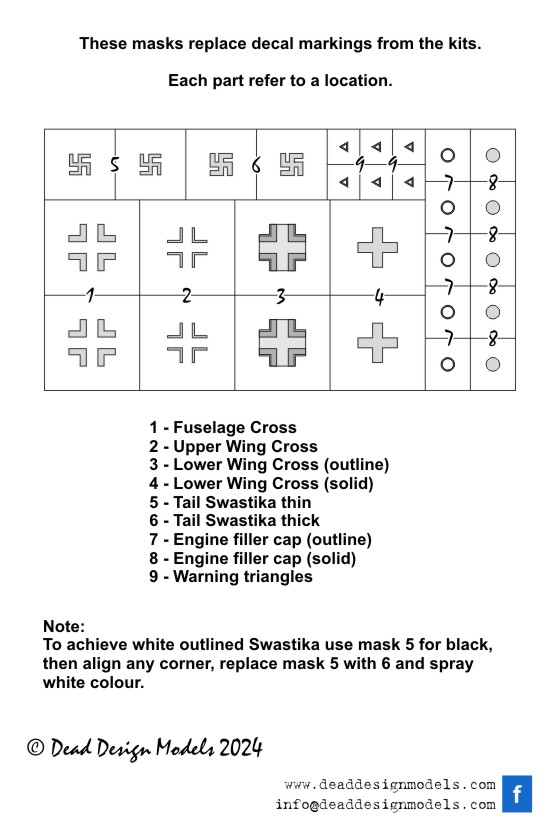Dead Design Models - 1/72 Messerschmitt Me-262A Schwalbe National Insignia for Hasegawa kits masks