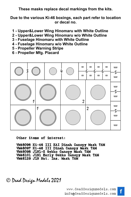 Dead Design Models - 1/48 Mitsubishi Ki-46-III Dinah National Insignia paint masks (for Tamiya kits)