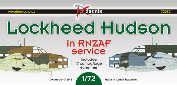 DK Decals - 1/72 Hudson in RNZAF Service (16 camo schemes)
