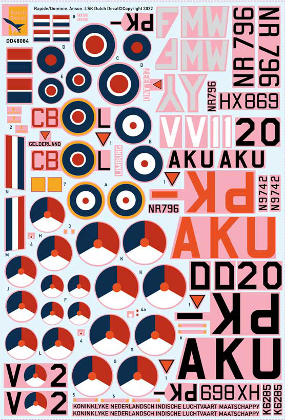 Dutch Decal - 1/48 Avro Anson, De Havilland Rapide / Dominie Lsk Knilm