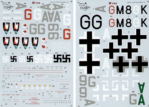 Eagle Cal - 1/32 Messerschmitt Bf 110C/Bf 110E flown by Wolfgang Falck (4) M8+GK 2.ZG76 RLM 70/71/56 1939; G9+GA NJG1 1940; G9+green AA NJG1 1941; Both overall black. G9+greyAA NJG1 RLM 75/76 1943