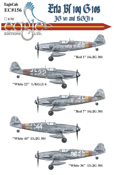 Eagle Cal - 1/32 Messerschmitt Bf 109G-10 Erla "Red 1" 14./JG 301 "White 22" 1./KG(J) 6 "Red 7" 14./JG 301 "White 44" 13./JG 301 "White 36" 13./JG 301