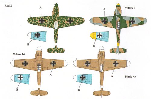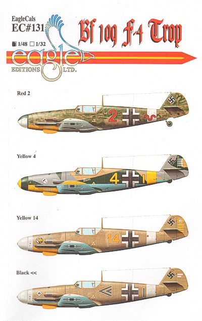 Eagle Cal - 1/48 Messerschmitt Bf-109F-4. Markings for 'Red 2' 8./JG 27 'Yellow 4' 9./JG 27 Pilot: Obfw. Eberhard von Boremski 'Yellow 14' 3./JG 27 H.J.Marseille '
