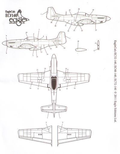 Eagle Cal - 1/72 North-American P-51D Mustang Part 2 (3) 44-13305 WR-Z 355th Fg Capt Henry Brown 'Hun Hunter/Texas', non standard Od on upper surfaces, white nose, partial D-Day stripes, 44-13410 E2-C 361st Fg Col. Thomas J.Christian 'Loi IV/Athelene' non standard OD/Dk Green uppersurfaces, yellow nose, partial D-Day stripes, 44-13878 HO-Y 352nd Fg Maj. John Bennett, Sharkmouth, Blue nose