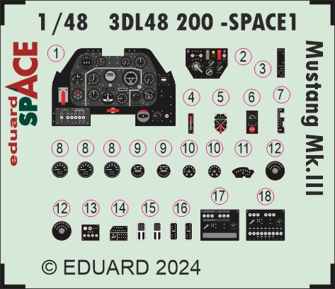 Eduard - 1/48 North-American Mustang Mk.III 3D-printed waterslide instrument decals and etched seat-belts (for Eduard kits)