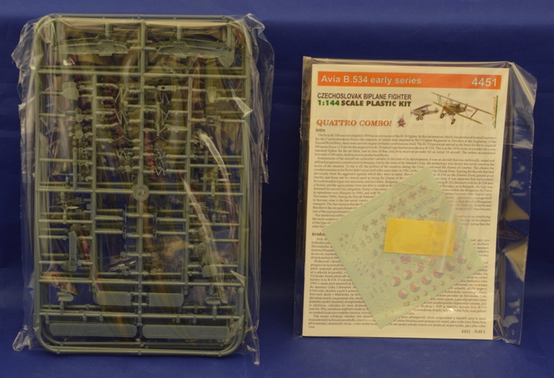Eduard - 1/144 Avia B-534 early series QUATTRO COMBO Very first release of 1/144 scale kit from Eduard tool made in 2015, plastic parts for 4 complete models, decals printed by Eduard, 6 marking options. Painting mask, full color instructions.