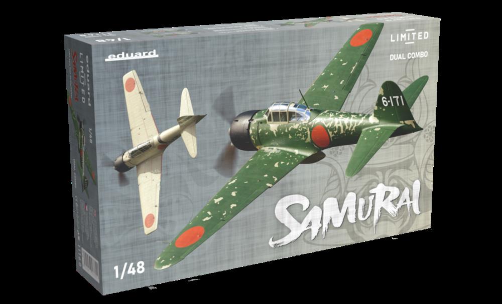 Eduard - 1/48 Mitsubishi A6M3 Zero Samurai Dual Combo Limited edition kit of Japanese WWII naval fighter aircraft Mitsubishi A6M3 Zero in 1/48 scale. Kit presents variants A6M3 Zero Type 22, 22a and 32. Plastic parts: Eduard, marking: 12, decals: Eduard, Pe parts: yes, pre-painted painting mask: yes, resin parts: no