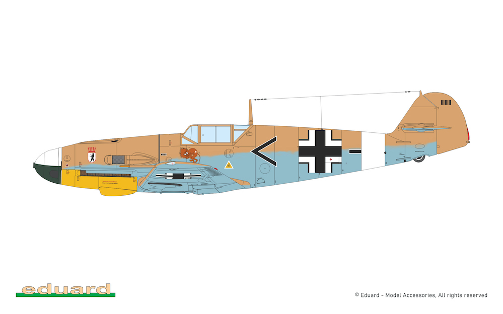 Messerschmitt Bf-109 in F-4, G-2 and G-4 versions in 1/72 scale. The kit offers 10 marking options for aircraft used by Luftwaffe units in African theater of operations. The box contains plastic sprues for two complete kits in following combinations: F-4 + G-2 or F-4 + G-4.
