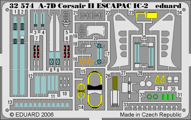 EDUARD - 1/32 Scale AIRCRAFT COLOR PHOTO ETCHED SETS - A-7D Corsair II ESCAPAC IC-2 - (TRU)