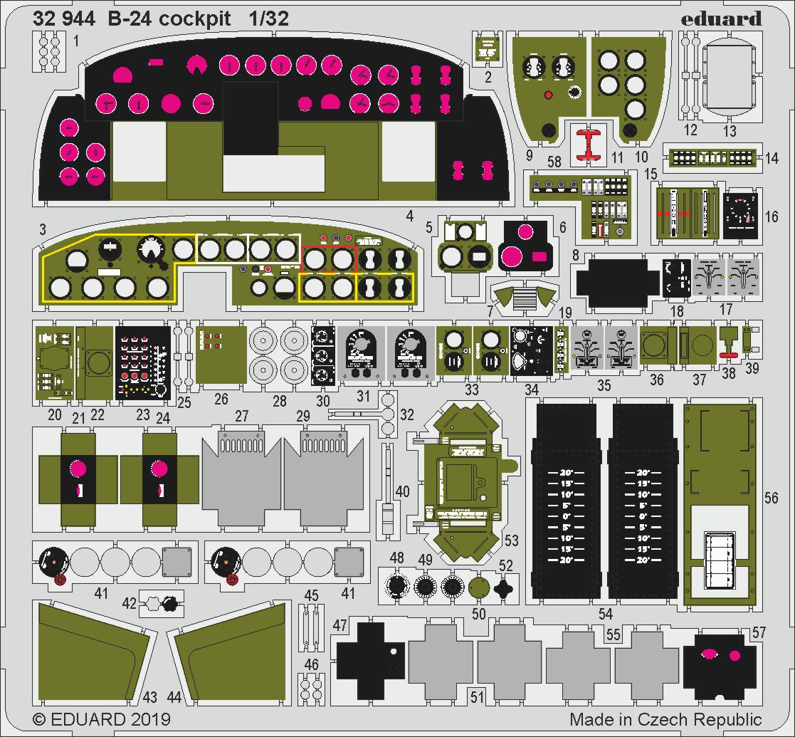 Eduard - 1/32 Consolidated B-24D/B-24J Liberator cockpit (for Hobby Boss kits)