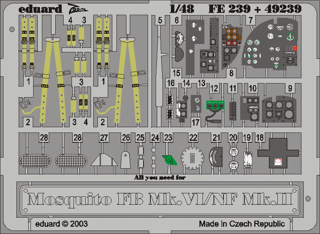 EDUARD - 1/48 Scale AIRCRAFT COLOR PHOTO ETCHED SETS - Mosquito FB Mk.VI/NF Mk.II - (TAM)