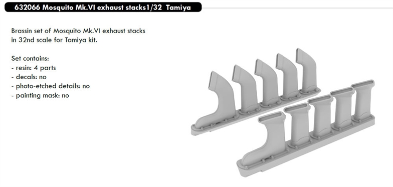 BRASSIN 1/32 Mosquito Mk.VI exhaust stacks