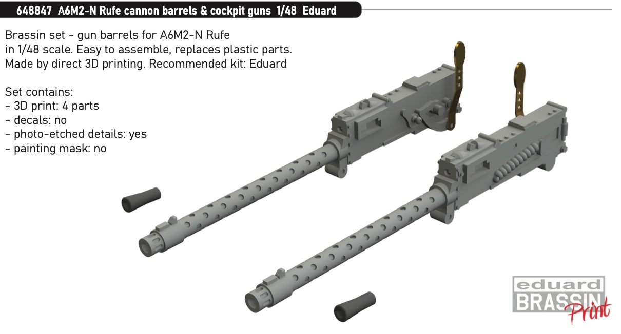 EDUARD - Brassin 1/48 A6M2-N Rufe cannon bar. & cockpit guns