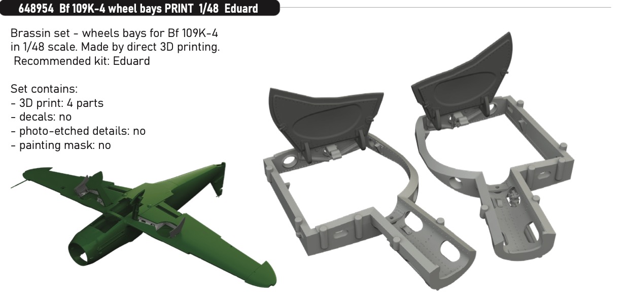 Brassin 1/48 Bf 109K-4 wheel bays PRINT EDU