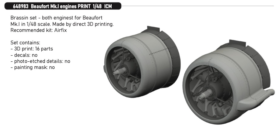 Brassin 1/48 Beaufort Mk.I engines for ICM