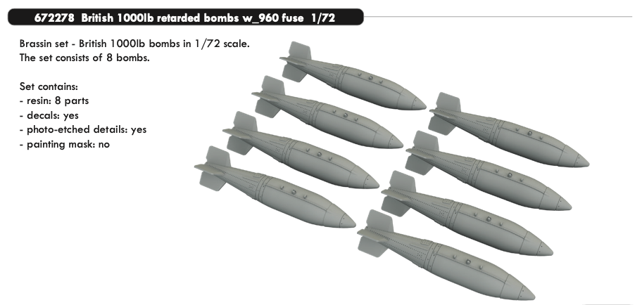 Brassin 1/72 British 1000 lb retarded bombs with 960 fuse