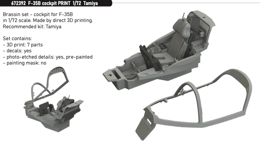 EDUARD - Brassin 1/72 F-35B cockpit PRINT for Tamiya