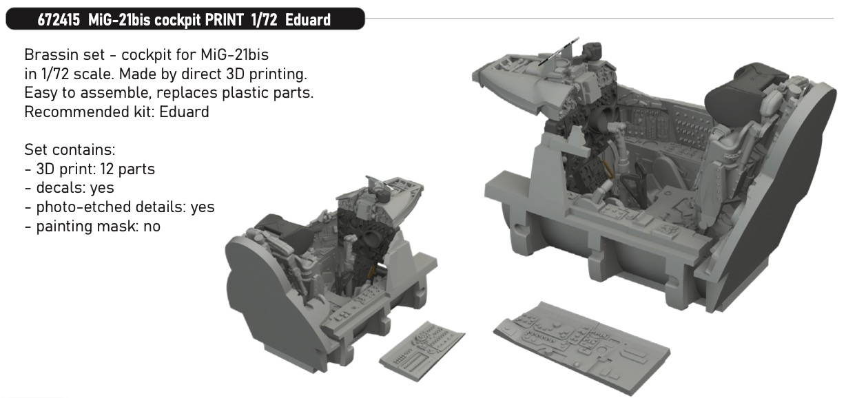 Eduard - Mikoyan MiG-21bis cockpit Print 1/72 (for Eduard kits) Brassin set cockpit for MiG-21bis