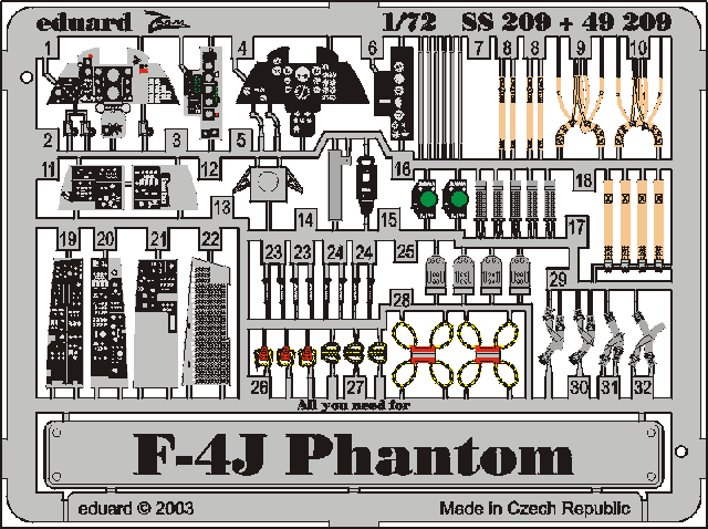 EDUARD - 1/72 Scale AIRCRAFT COLOR PHOTO ETCHED SETS - F-4J Phantom II - (HAS)