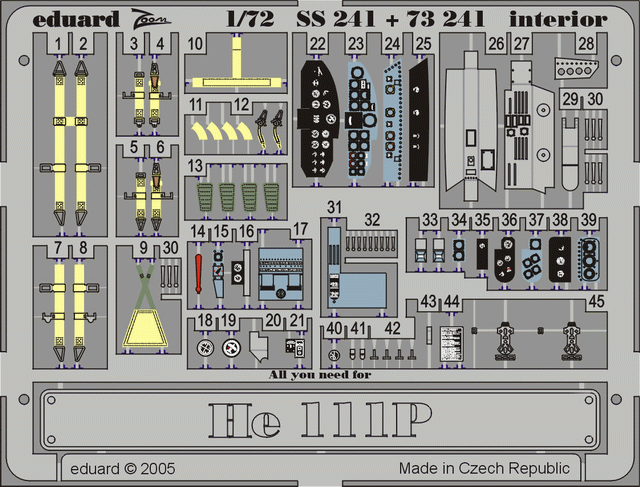 EDUARD - 1/72 Scale AIRCRAFT COLOR PHOTO ETCHED SETS - He 111P interior - (HAS)