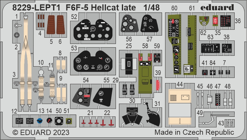 Eduard - 1/48 Grumman F6F-5 Hellcat late Weekend edition kit of US naval fighter aircraft F6F-5 Hellcat in 1/48 scale. This version of the legendary naval fighter was without a window in the fuselage behind the cockpit plastic parts:Eduard marking options: 6 decals: Eduard Pe parts
