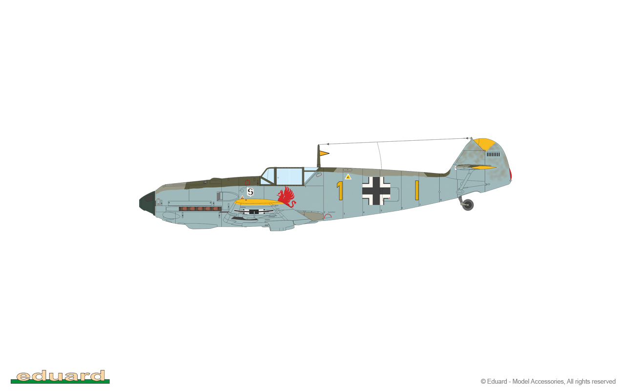 Eduard - Messerschmitt Bf-109E-4 1/48 The Weekend edition kit of German WWII fighter aircraft Bf-109E-4 in 1/48 scale. Plastic parts: Eduard, marking options: 4, decals: Eduard, Pe parts: no, painting mask: no, resin parts: no