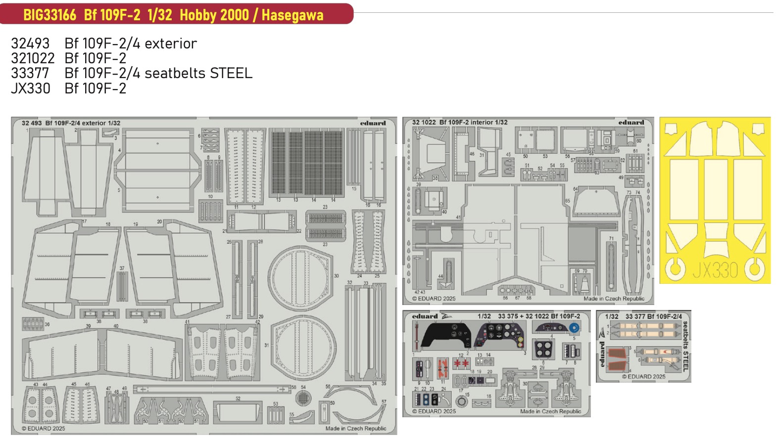 Eduard - 1/32 Messerschmitt Bf-109F-2 (for Hasegawa and Hobby 2000 kits) This BiG-Ed set includes all these Eduard sets....