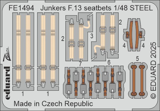EDUARD - 1/48 SET Junkers F.13 seatbelts STEEL for Miniart
