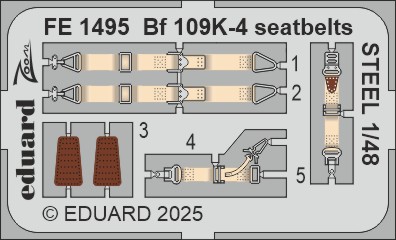 1/48 Bf 109K-4 seatbelts STEEL for Eduard