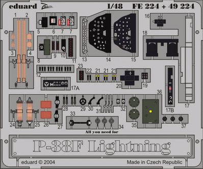 Eduard - 1/48 Lockheed P-38F Lightning PRE-PAINTED In COLOUR! (for Hasegawa kits) 'Zoom' sets are simplified versions of the larger sets and include about 20 of the more important and prominent parts for detailing the aircraft