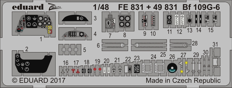 Eduard - 1/48 Messerschmitt Bf-109G-6 (for Zvezda kits) 'Zoom' sets are simplified versions of the larger sets and include about 20 of the more important and prominent parts for detailing the aircraft