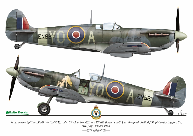 - Spitfire Lf Mk.Vb (EN921), coded YO-A of No. 401 Sqn RCAF, flown by F/O Jack Sheppard, Redhill / Staplehurst / Biggin Hill, UK, July-October 1943.