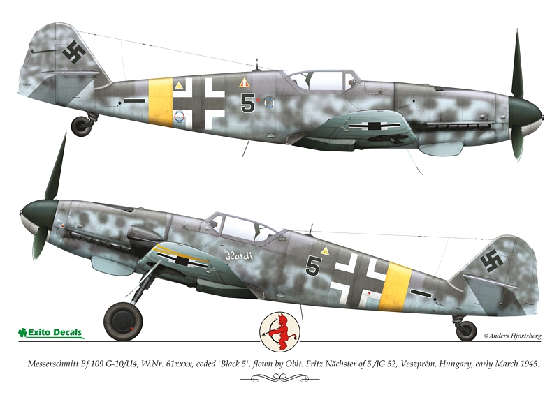 - Messerschmitt Bf-109G-10/U4, W.Nr. 61xxxx, coded Black 5 , flown by Oblt. Fritz N?chster of 5./JG 52, Veszpr?m, Hungary, early March 1945.