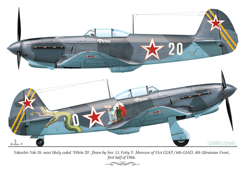 - Yakovlev Yak-1b, most likely coded White 20 , flown by Snr. Lt. Fotiy Y. Morozov of 31st Giap / 6th GIAD, 4th Ukrainian Front, first half of 1944.