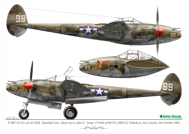 - P-38G-13-LO, s/n 43-2204, Beautiful Lass , flown by Lt. John G. Jump O Neill of 9th Fs / 49th FG, Dobodura, New Guinea, late October 1943.