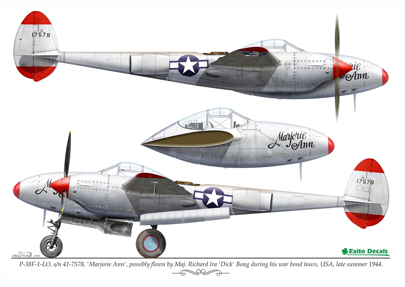 - P-38F-1-LO, s/n 41-7578, Marjorie Ann , possibly flown by Maj. Richard Ira Dick Bong during his war bond tours, USA, late summer 1944.