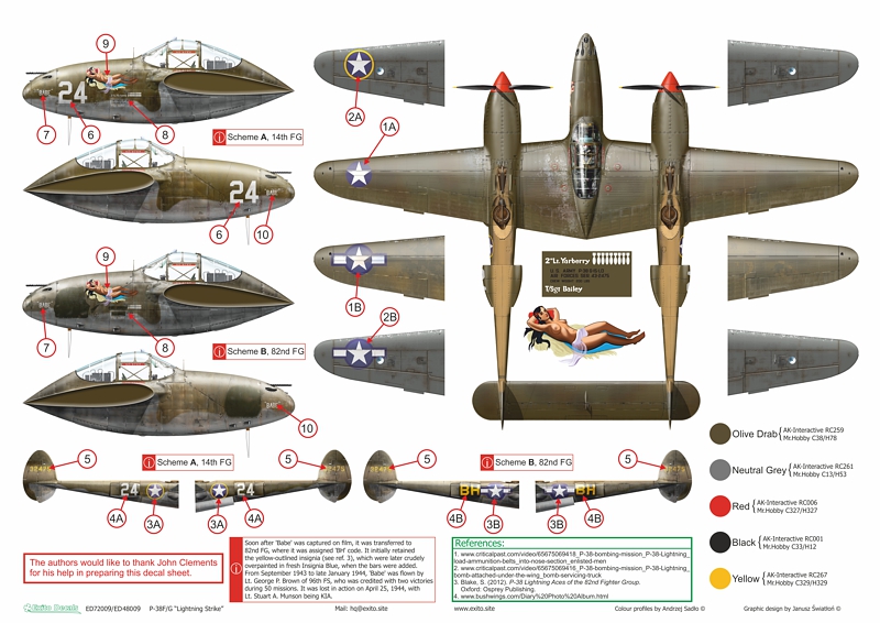 - P-38G-15-LO, s/n 43-2475, Babe , as flown by Lt. Edgar L. Yarberry of 48th Fs / 14th FG, El Bathan, Tunisia, second half of June 1943, and as flown by Lt. George P. Brown of 96th Fs / 82nd FG, Italy, autumn 1943.