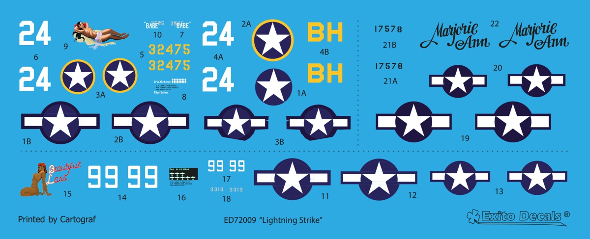 Exito Decals - 1/72 Lockheed P-38F/G Lightning 'Lightning Strike'
