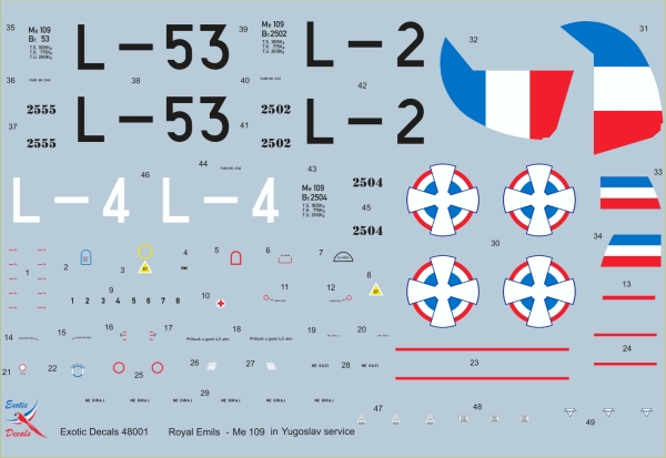 Exotic Decals - 1/48 Royal Emils Messerschmitt Bf-109 in Yugoslav service
