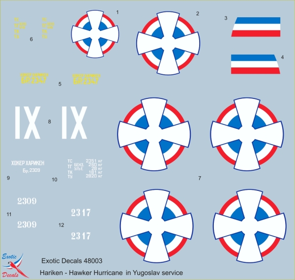 Exotic Decals - 1/48 Hariken Hawker Hurricane Mk.I in Yugoslav service
