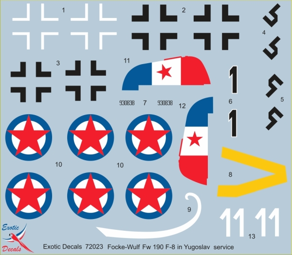 Exotic Decals - 1/72 Partizan Focke-Wulf Captured Fw 190 F-8 WNr.930838 in Yugoslav service