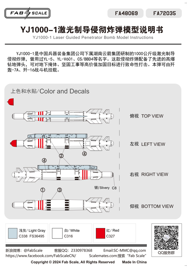 FabScale Studio - 1/48 Plaaf YJ-1000-1 Laser Guided Penetrator Bomb and Pylon 2pcs. 3d-printed